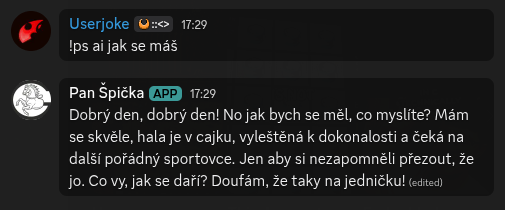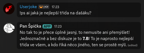 Pan Špička je discord Bot developovaný a udržovaný studenty pro studenty.